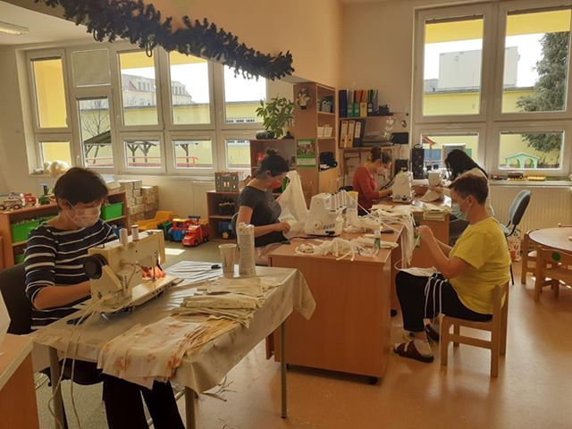 O sto šest se šijí roušky v kyjovské MŠ Nádražní, v základní škole Šlapanice nebo třeba ve Slavkově u Brna.